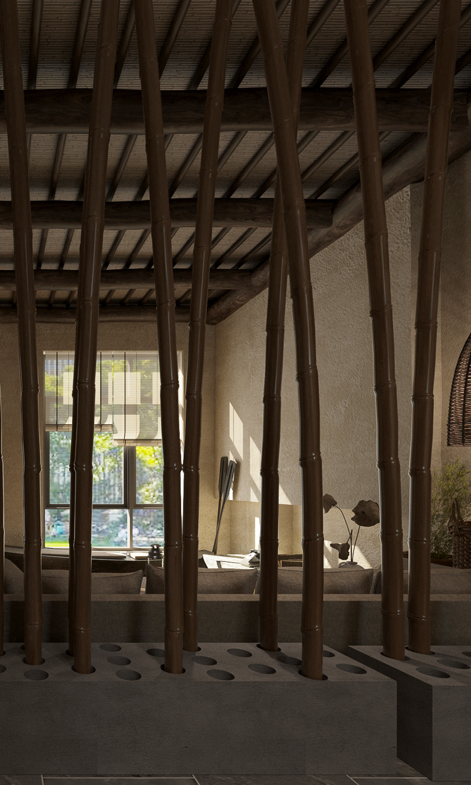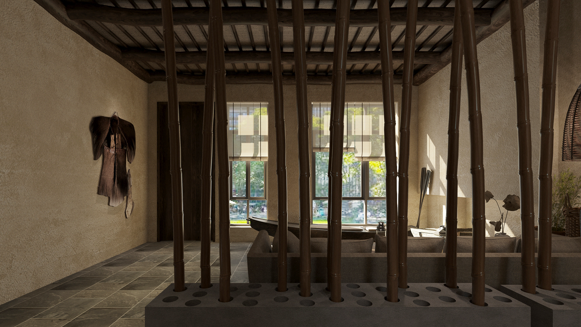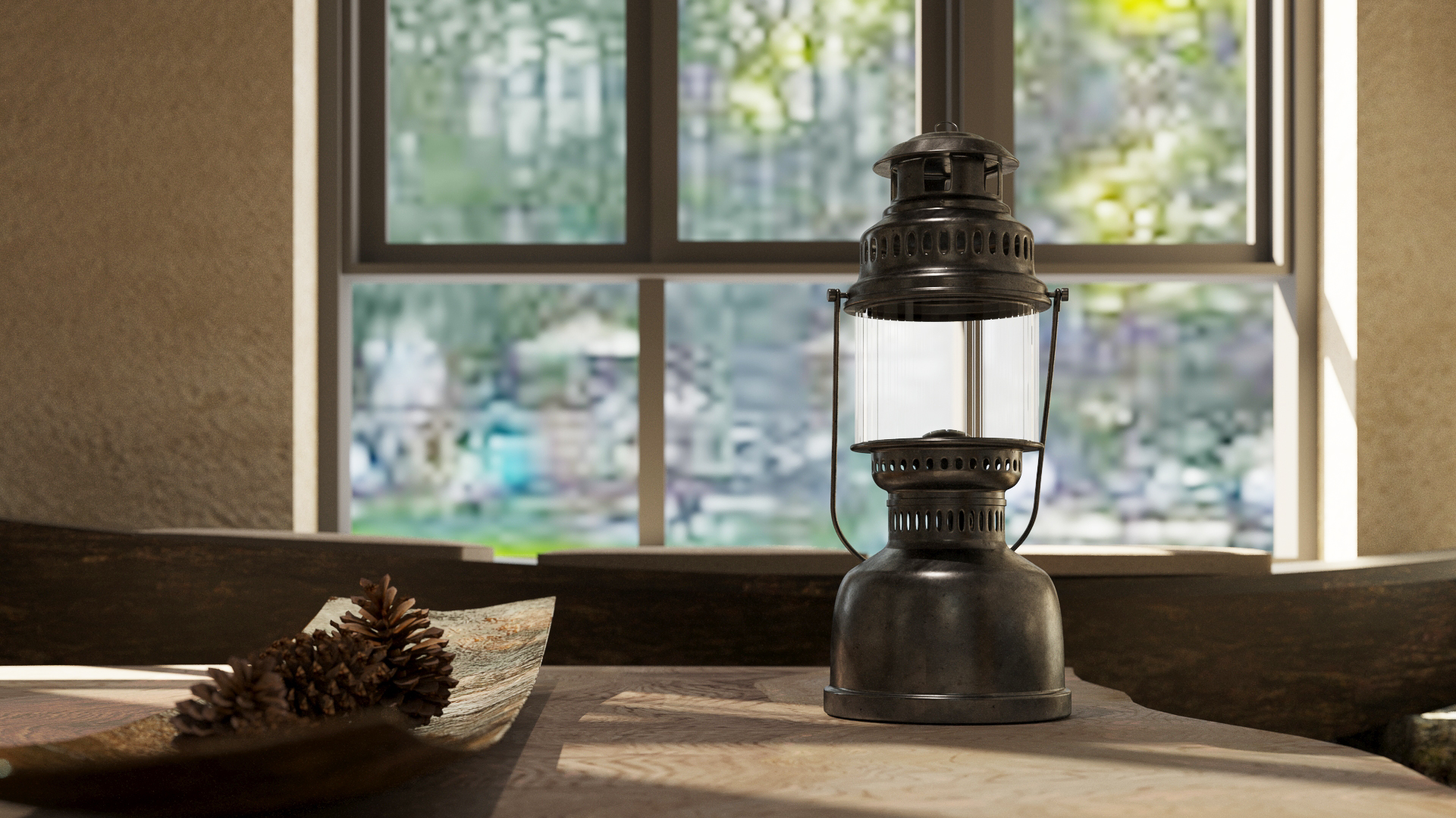 It was a cluster of flowers and trees outside the window